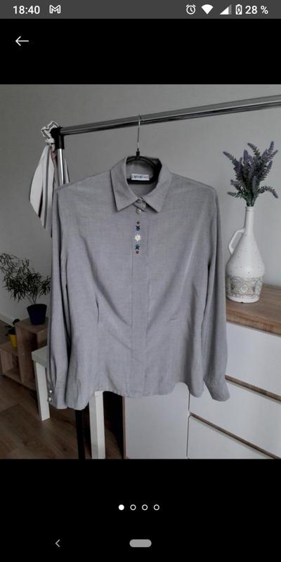 Сіра сорочка з вишивкою під комірцем від Betty Barclay. Дуже красиві гудзики на рукавах. Тканина м'яка та дуже приємна. Розмір s/m плечі 44 см довж.рукава 59 см довжина 62 см ширина під руками 50 см