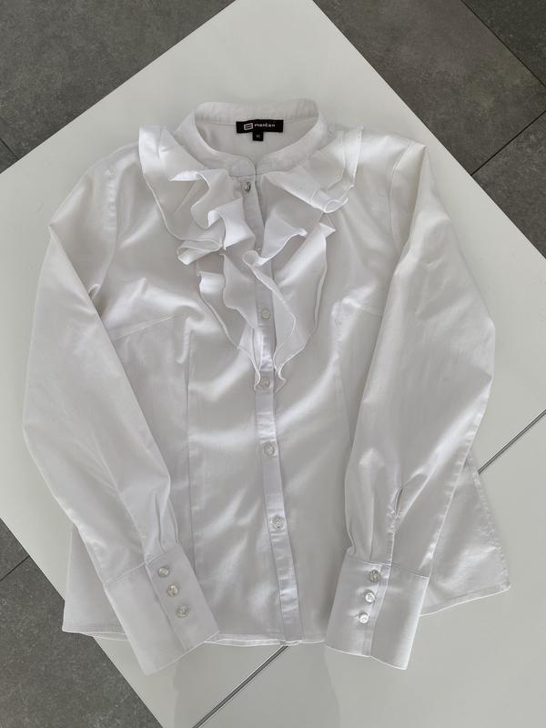 Состояние идеальное, хлопок эластан, размер 42, есть небольшой нюанс показала на фото, пуговицы брендированы пог 48, рукав 61, длина 60