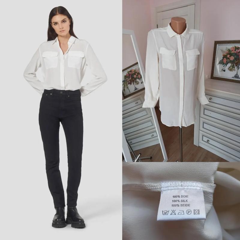 якісний натуральний ніжний шовк, загальний стан ідеальний, практично як нова, але є нюанс - останнє фото - відсутній один гудзик і незначне забруднення в самому низу сорочки розмір 38 довжина 75 плечі 37 рукав 60 пог 50