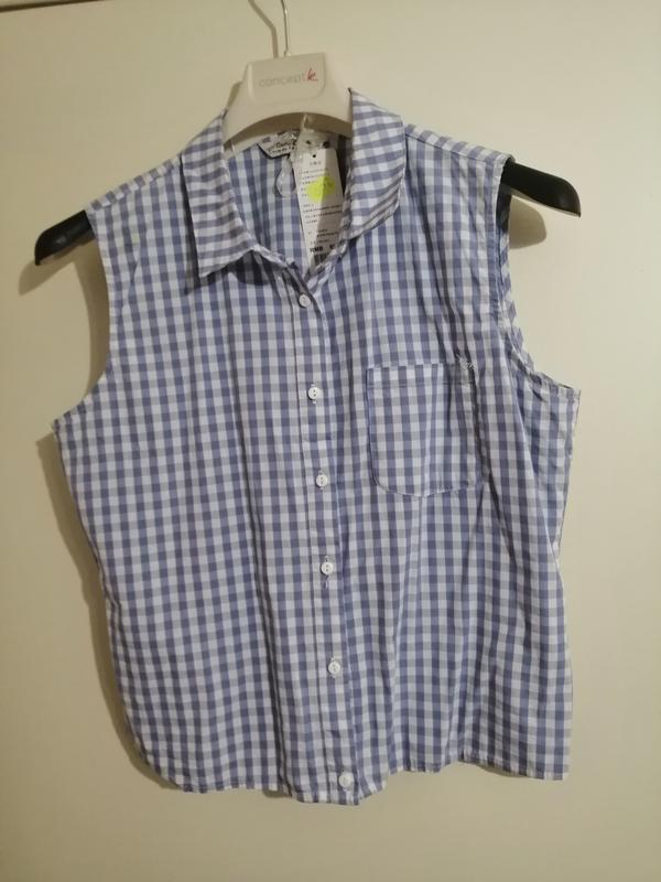 Рубашка белая с голубым в мелкую клетку.С коротким рукавом. На груди один карман. Пог 50.Низ 50.Длина 56.Плечо 11.Пройма 24.