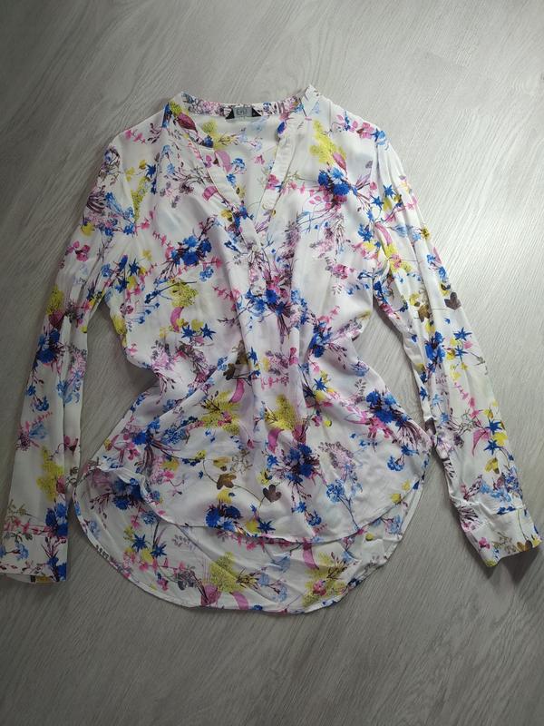 В ідеальному стані. Довжина від плеча до низу 65см(ззаду трохи удленнена +7см), довжина рукава 59см. З грудей 46см. 100% віскоза.