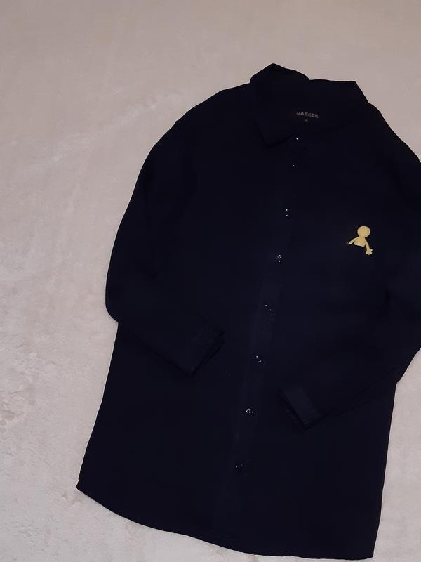 Льняна темно синя сорочка регульований рукав 3/4 jaeger р. 12/14