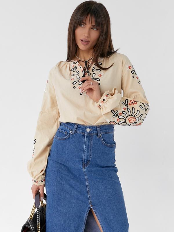 Блузка з вишивкою на поличці, рукавах та манжетах. Доповнена зав'язками з пензликами по горловині. Розміри: від 44 до 50 Доставка: 💙 Укрпошта (повна передплата) 💛Нова Пошта (повна передплата або накладний платіж з частковою передплатою) ✨Відправка 2-3 робочі дні