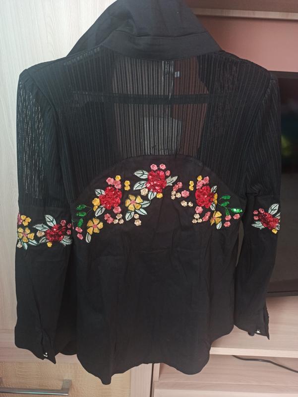 Котонова сорочка з елементами вишивки гладдю і бісером. Розмір М, підійде і на S. Нова, з біркою. Купувалась дорого, за 935 грн. Довжина 58, груди 40, рукав 54. Добре тягнеться.