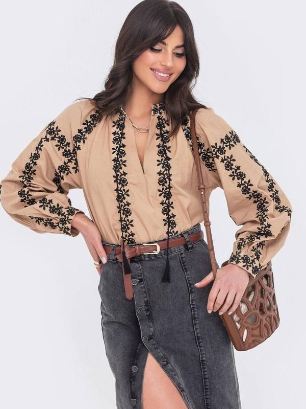 ❤️ шикарна жіноча вишивана сорочка бежева вишиванка вишитая рубашка беж
