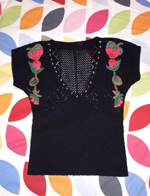 Ажурна супержіночна вишиванка з об'ємними квітами кольоровими камінцями і глибоким декольт...