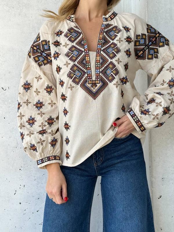 Бежева вишиванка ❤️ сорочка у етно стилі ❤️ вишита блуза ❤️ жіноча вишита сорочка