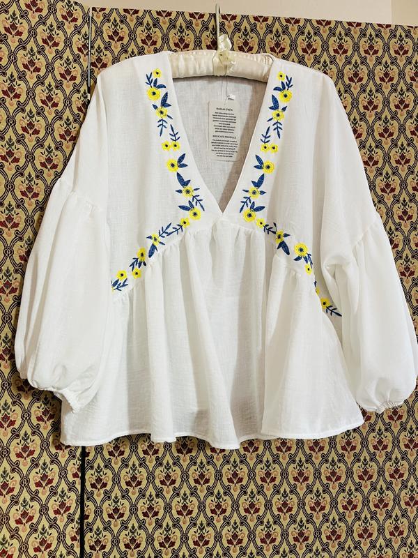 Вишиванка стиль бохо буфи вільного крою під льон блуза з вишивкою