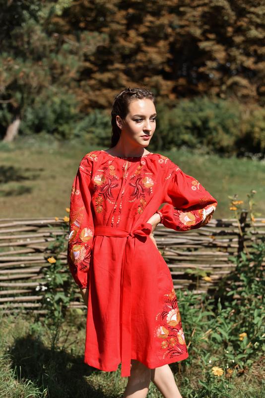 Пересилка цієї моделі здійснюється новою поштою тільки після 100% оплати на картку приватбанку або монобанку впродовж 1-2 робочих днів. Більше 2186 позитивних відгуків за 5 років відданої роботи говорять про те, що нам можна довіряти!!!!!!!!!! Оригінальний квітковий орнамент в стилі петриківського розпису покриває майже повністю верх вишиванки: рукава, манжети, плечі, груди. Спинка однотонна. Застібається вишиванка спереду. Пишні рукави починаються від плеча, а не від горловини, що дозволяє візуально зберегти тендітність жіночої статури. Поділ спідниці має вшиті з боків клини, які розширюють плаття трикутником донизу. На них також красується вишивка. У комплекті з сукнею йде і довгий пояс , що дозволяє підкреслити тонку жіночу талію. розмір від 42 до 58 можа підібрати пару з чоловічою сорочкою або дитячими вишиванками. Всі додаткові фото і інформацію надам в переписці.