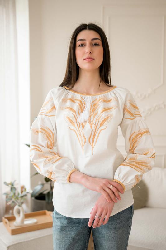 Біла вишиванка з колосками вишита сорочка жіноча вишиванка блуза жіноча