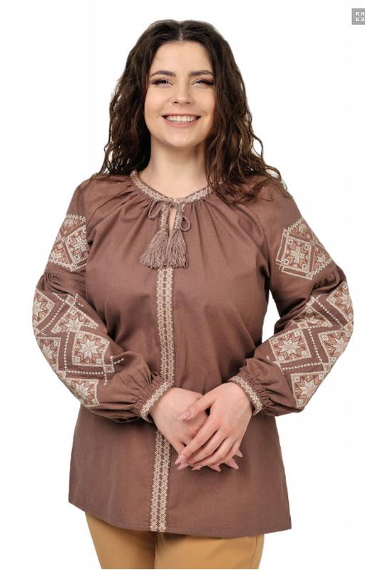 Жіноча вишиванка - це традиційна українська сорочка, виготовлена з лляної тканини (80% льон, 20% поліестер), яка має вишивку етнічного мотиву. Модель вільного прямого покрою, з довгими рукавами. Лляні вишиванки дуже популярні серед українських жінок та можуть бути використані як національний атрибут, а також як елемент сучасного стилю. Вони можуть мати різні варіації фасонів та декору, що робить їх універсальними для різних випадків використання - від повсякденного використання до урочистих заходів. Доступні розміри: S,M Весь асортимент магазхіну ************************ Жіночі вишиванки ****************************************************** vzroslye?cat_id=307 Жіночий одяг *****************************************************
