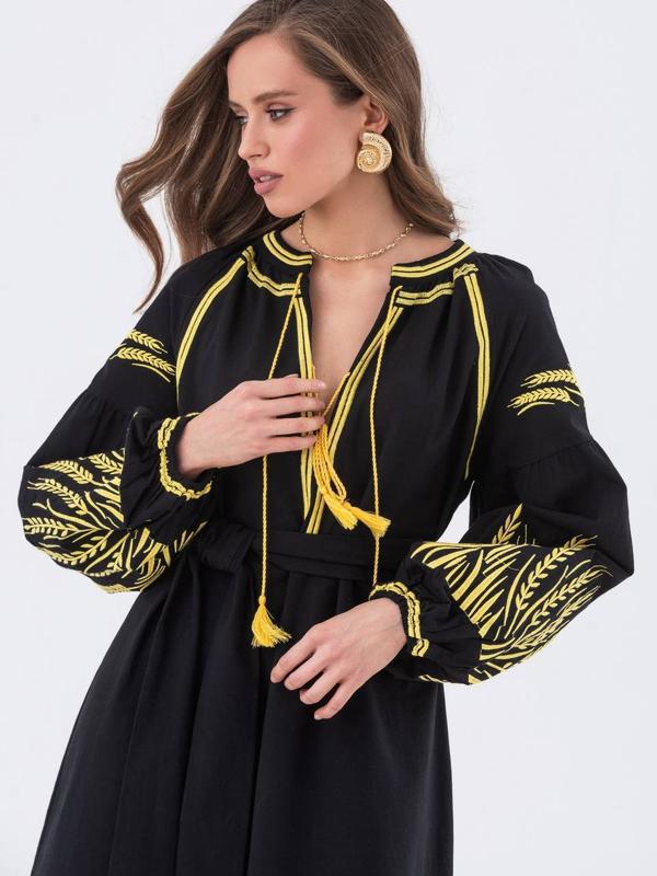 Сукня вишиванка, чорне жіноче плаття з вишивкою, стильна вишита сукня