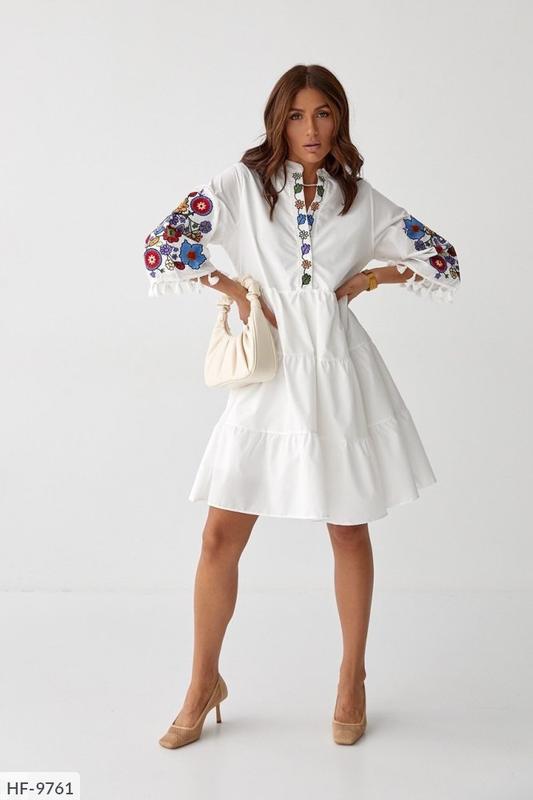 Сукня-вишиванка Матеріал: 80% бавовна, 20% поліестер Виробник: Туреччина Ширина під проймами рукавів (над грудьми): S - 51см; M - 52см; L - 53см Довжина рукава від горловини: S - 56см; M - 57см; L - 57см Ширина по стегнах: S - 71см; M - 72см; L - 73см Довжина виробу: S - 95см; M - 96см; L - 97см