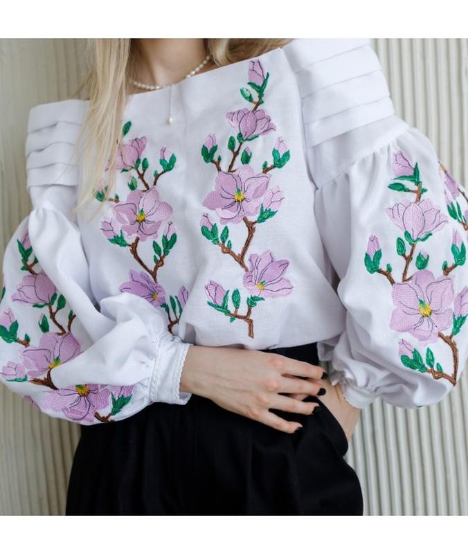 вишиванка дизайнерська квіти магнолії Тканина: домоткане полотно Вишивка: машинна розмір 42 44 46