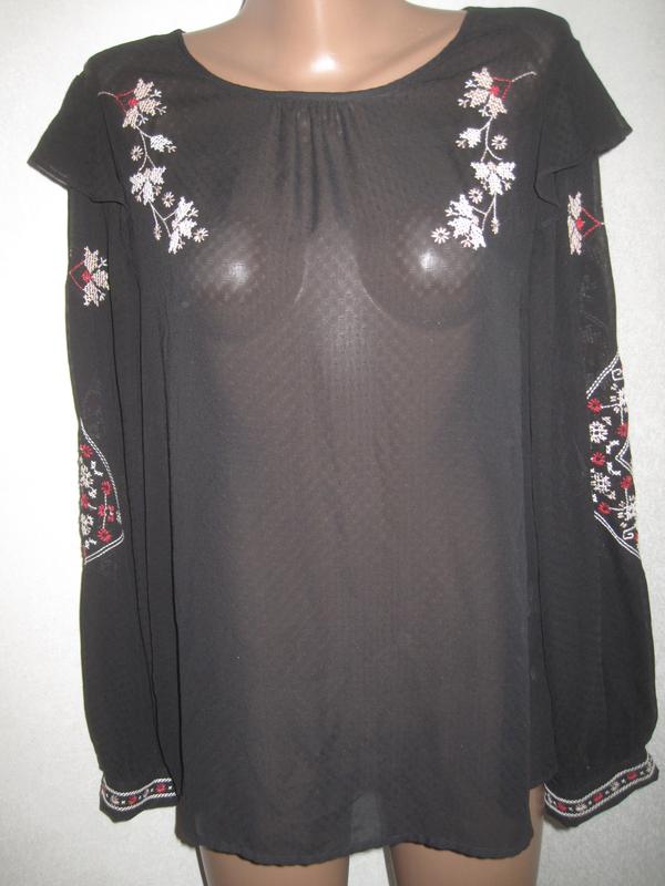 Черная шифоновая вышиванка New Look р-р12, полиэстер, светится, ПОГ51, ПОТ52, ПОБ59. длина 65. рукав 63. идеальное состояние, 220грн