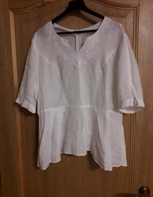 Елегантна вишита блуза білим по білому, створена підкреслити вашу індивідуальність. Блузи з баскою завдяки акценту на талії створюють ідеальні пропорції. Ніжна, невагома натуральна лляна блуза. Виробник ,,Едельвіка", Україна. Стан нової речі. ПОГ 57 ПОТ 45 Гарно буде з білим, чи контрастним поясочком, або українською крайкою. На замовлення виготовлю українську силянку, або чокер (дивіться розділ ПРИКРАСИ) ДИВІТЬСЯ ТАКОЖ ІНШІ МОЇ ОГОЛОШЕННЯ