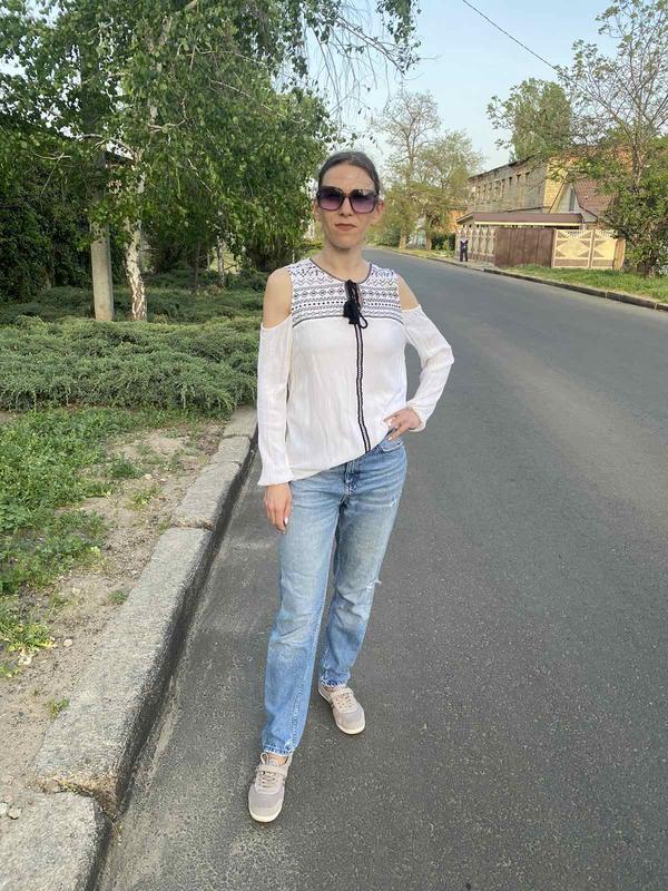 Вишиванка жіноча вільного крою у дуже гарному стані. розмір L, але підійде і на S-M, одягнуто на модель розміру S. Один нюанс - шнурок не в ідеальному стані, трохи покашлачений, де зав'язується.