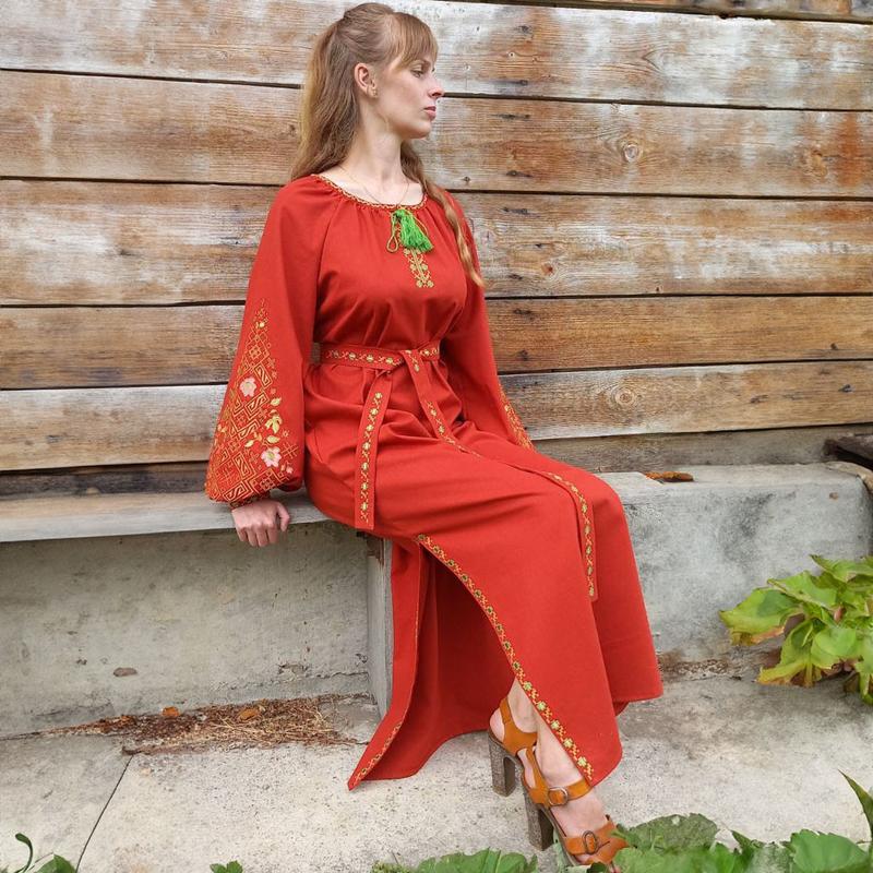 В такому вбранні важко залишитись непоміченою. Не соромтесь, ловіть захопливі погляди на собі і будьте у центрі уваги оточуючих. Підкресліть свою красу, харизму та відчуття доброго смаку, обравши наш вишитий одяг. Жіноче вишите плаття "Клео" При замовленні враховуються будь-які побажання Клієнта (фасон, колір, матеріал, візерунок тощо), а також можливий варіант пошиття сукні на дітей різного віку. Жіноче вишите плаття "Клео" - Техніка вишивання: машинна; - Тканина: на фото - льон, (Тканини на вибір - велюр, льон, домоткане полотно, габардин, батист, атлас, онікс, шифон, мадонна); - Колір: червоний; - Фасон сукні: пряме з клинами і з поясом; - Довжина сукні: максі (130 см); - Рукав: довгий "бохо"; - Розмір: 40-66 або Ваші особисті мірки (зріст, обхват грудей, обхват талії, обхват стегон). Вишиті сукні - символ вишуканості. Оновіть свій образ за допомогою наших унікальних моделей. Відчуйте на собі витонченість та красу української вишивки, яка завжди буде в тренді. Бажаєте комплект вишиванок у одному стилі для всієї сім'ї?! Не проблема!.. Ми пошиємо плаття, блузки, сорочки з однаковим візерунком як на дорослих, так і для дітей. Ми займається пошиттям вишитого одягу вже більше 8-ми років. У нас одні з найкращих цін на ринку України. Про якість наших товарів свідчать відгуки наших задоволених клієнтів! В нашому асортименті є вишиті жіночі сукні, блузки, чоловічі вишиті сорочки та дитячі вишиванки. Наша особливість це те, що ми - виробники і можемо будь-яку модель пошити індивідуально під ваші розміри. Не менш важливою особливістю, є можливість пошиття цілого комплекту з ідентичним візерунком, наприклад, для чоловіка, дружини та доньки з сином! Замовивши у нас - Ви залишитеся задоволеними, адже ми - гарантуємо якість нашого товару. Купувати товар у нас можна і гуртом і в роздріб. Також ми працюємо по перерахунку з організаціями. Пошиття будь-якої моделі можливо, як за індивідуальними мірками, так і за стандартними розмірами. Для пошиття використовується тільки найякісніша тканина! Для гуртових клієнтів - виготовляємо безкоштовний зразок і відправляємо за наш рахунок. Після чого замовник може внести коригування і відправити зразок назад. Ми можемо виготовити будь-яку модель індивідуально з візерунком, який Ви забажаєте! Ще однією з переваг - одні з найнижчих цін на ринку. У нашому асортименті є, як і більш дорогі варіанти, так і бюджетні - для будь-якого гаманця! Якщо у Вас виникають запитання - телефонуйте до нашого консультанта. Ми з радістю відповімо на усі Ваші запитання і допоможемо підібрати розмір чі модель товару! Замовити товар Ви можете залишивши його через кошик вказавши свої дані та розмір товару (або Ваші заміри). Також, це можна зробити по телефону з менеджером! Після уточнення усіх деталей - замовлення передається на виготовлення. Коли вишиванка готова - ви можете обрати спосіб оплати та доставки. На гуртові замовлення більше 5 шт. одного виробу (візерунку) потрібно вносити 30% передплату перед виготовленням товару.
