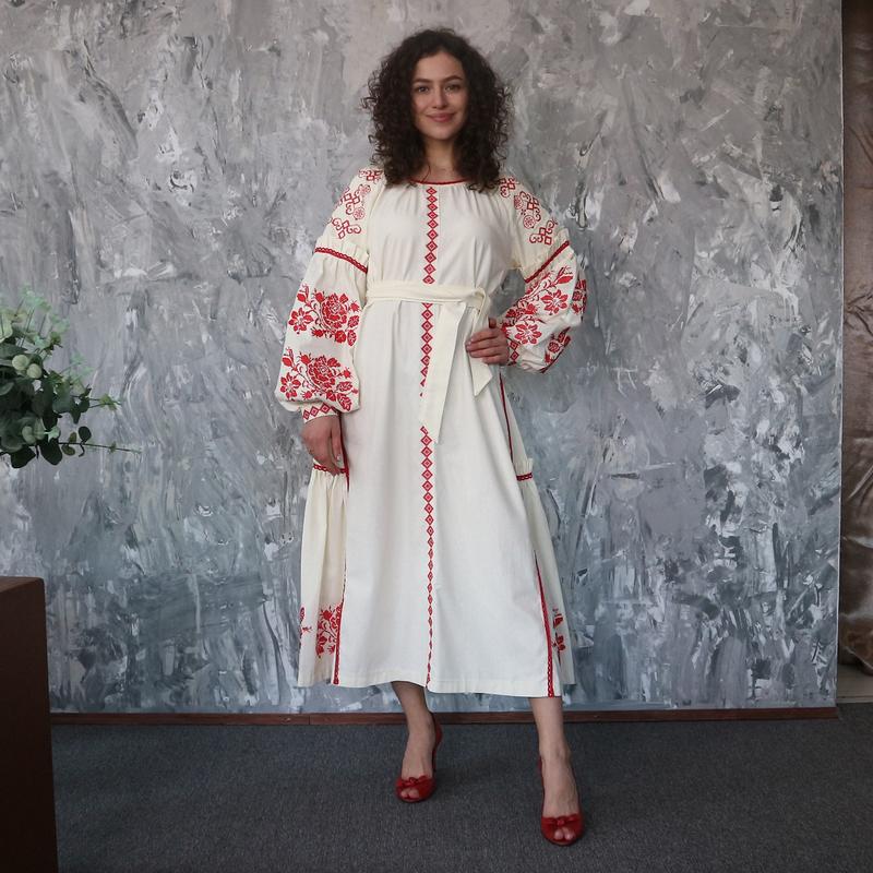 В такому вбранні важко залишитись непоміченою. Не соромтесь, ловіть захопливі погляди на собі і будьте у центрі уваги оточуючих. Підкресліть свою красу, харизму та відчуття доброго смаку, обравши наш вишитий одяг. Жіноче вишите плаття "Айріс" При замовленні враховуються будь-які побажання Клієнта (фасон, колір, матеріал, візерунок тощо), а також можливий варіант пошиття сукні на дітей різного віку. Жіноче вишите плаття "Айріс" - Техніка вишивання: машинна; - Тканина: на фото - льон, (Тканини на вибір - велюр, льон, домоткане полотно, габардин, батист, атлас, онікс, шифон, мадонна); - Колір: кремовий; - Фасон сукні: пряме з клинами і з поясом; - Довжина сукні: міді (125 см); - Рукав: довгий "бохо"; - Розмір: 40-66 або Ваші особисті мірки (зріст, обхват грудей, обхват талії, обхват стегон). Вишивані плаття - це не привіт із минулого, це невмируща традиція, яка ніколи не покидає нашої свідомості. Що може бути прекрасніше за жінку у вишиванці? Тонкий стан, строгі лінії, неймовірний візерунок - від вас буде неможливо відвести очей. Обирайте сукню за смаком - підкресліть свою витонченість та жіночність! Бажаєте комплект вишиванок у одному стилі для всієї сім'ї?! Не проблема!.. Ми пошиємо плаття, блузки, сорочки з однаковим візерунком як на дорослих, так і для дітей. Ми займається пошиттям вишитого одягу вже більше 8-ми років. У нас одні з найкращих цін на ринку України. Про якість наших товарів свідчать відгуки наших задоволених клієнтів! В нашому асортименті є вишиті жіночі сукні, блузки, чоловічі вишиті сорочки та дитячі вишиванки. Наша особливість це те, що ми - виробники і можемо будь-яку модель пошити індивідуально під ваші розміри. Не менш важливою особливістю, є можливість пошиття цілого комплекту з ідентичним візерунком, наприклад, для чоловіка, дружини та доньки з сином! Замовивши у нас - Ви залишитеся задоволеними, адже ми - гарантуємо якість нашого товару. Купувати товар у нас можна і гуртом і в роздріб. Також ми працюємо по перерахунку з організаціями. Пошиття будь-якої моделі можливо, як за індивідуальними мірками, так і за стандартними розмірами. Для пошиття використовується тільки найякісніша тканина! Для гуртових клієнтів - виготовляємо безкоштовний зразок і відправляємо за наш рахунок. Після чого замовник може внести коригування і відправити зразок назад. Ми можемо виготовити будь-яку модель індивідуально з візерунком, який Ви забажаєте! Ще однією з переваг - одні з найнижчих цін на ринку. У нашому асортименті є, як і більш дорогі варіанти, так і бюджетні - для будь-якого гаманця! Якщо у Вас виникають запитання - телефонуйте до нашого консультанта. Ми з радістю відповімо на усі Ваші запитання і допоможемо підібрати розмір чі модель товару! Замовити товар Ви можете залишивши його через кошик вказавши свої дані та розмір товару (або Ваші заміри). Також, це можна зробити по телефону з менеджером! Після уточнення усіх деталей - замовлення передається на виготовлення. Коли вишиванка готова - ви можете обрати спосіб оплати та доставки. На гуртові замовлення більше 5 шт. одного виробу (візерунку) потрібно вносити 30% передплату перед виготовленням товару.