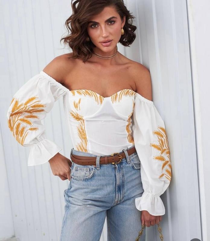 Вишитий корсетний топ із чашкою та об'ємними рукавами, топ із вишитими колосками