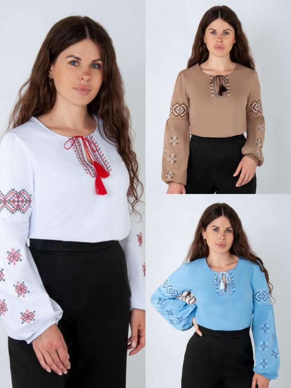 Вишиванка з орнаментом жіноча, з пишним довгим рукавом, стрейч