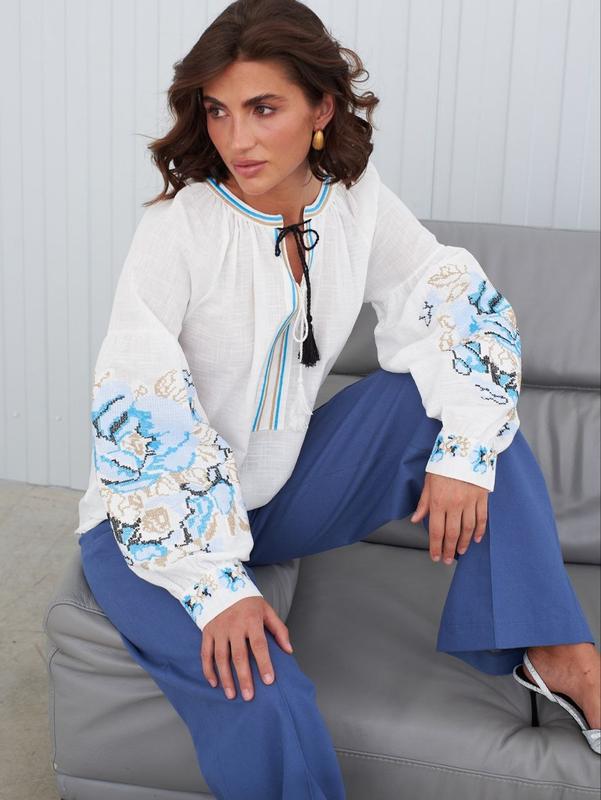 Сорочка з вишивкою "хрестиком" Арт 5780 Розмір S на ог до 90-91, Розмір M на ог до 96-99, Розмір L на ог до 105-106
