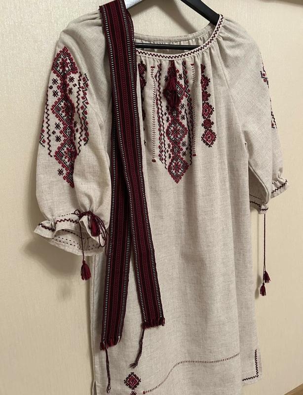 Лляна вишита сукня, ручна робота, розмір XS–S Нова(не носили) Ніжна сукня з натурального льону, оздоблена майстерною вишивкою ручної роботи. Легка, дихаюча тканина ідеально підходить для літа. Силует – вільний, але підкреслює талію. Ідеально підійде для поціновувачів етно-стилю або як акцентний елемент в повсякденному образі. • Розмір: XS–S • Матеріал: 100% льон • Вишивка: ручна робота Точні заміри запитуйте