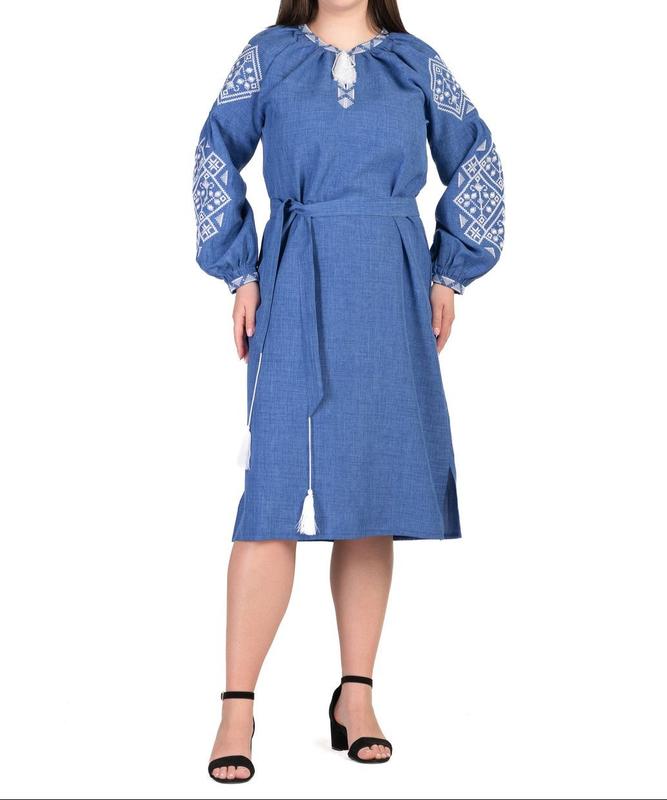 Сукня-вишиванка колір джинсовий габардин, льон
