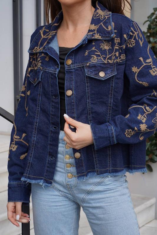 Колоритна джинсова куртка з вишивкою, українська куртка вишиванка, етно сорочка з вишивкою