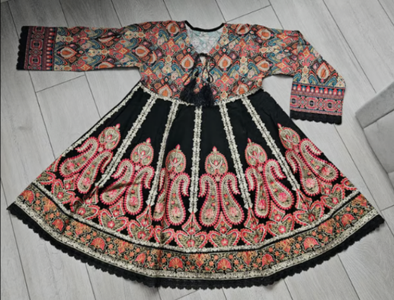 Сукня жіноча Бренд Mushtagsons Зверху прінт, знизу вишіта. Дуже гарно виглядає на Тіле. Розмір М . Не просвічує