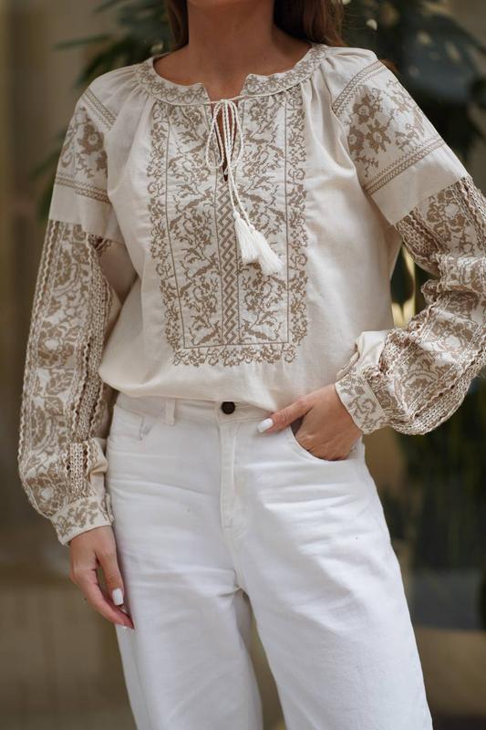 Жіноча вишиванка літня сучасна мережка блуза вишита сорочка з вишивкою