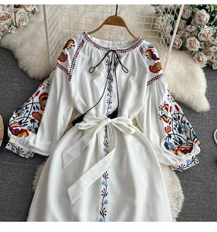 Лляна сукня з вишивкою,не світить ,в наявності в 3х кольорах чорна,біла та беж.Можна носити як вільного крою так і під поясок