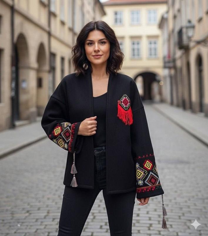 Красивий ошатний жакет з кашеміру. Українські мотиви. Розміри С, М, Л