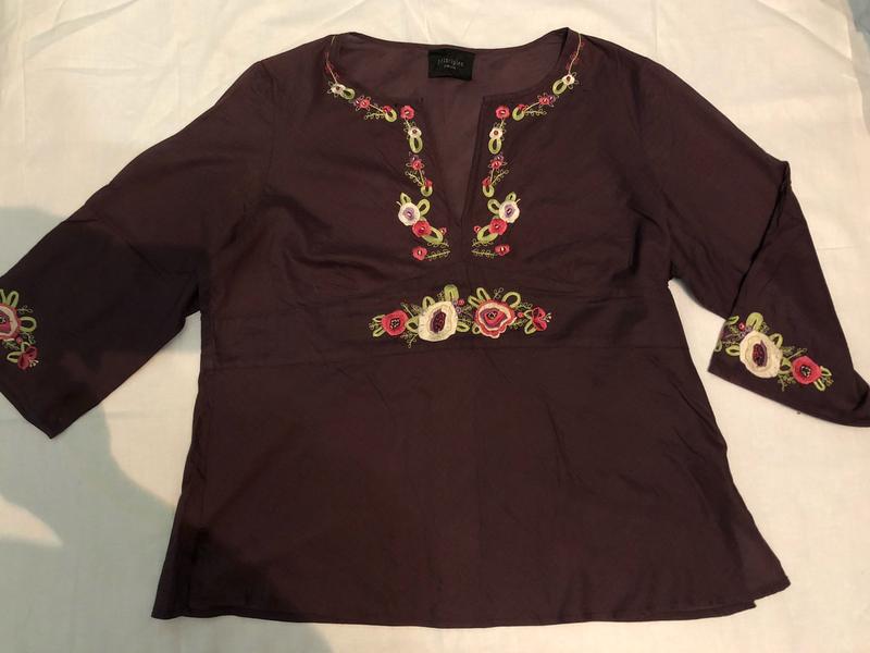 Блузка з тонесенькою натурального батісту лавандового кольору, надзвичайно приємна до тіла, оригінального фасону, не просвічує, підійде на укр. 48-й розмір, стан ідеальний. Буде у продаж тільки до кінця літа