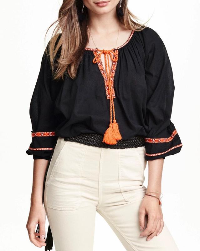 Блузка - вишиванка H&M чорна з помаранчевим Ціна – 450 грн Склад тканини: 100% бавовна Розмір – EUR 38. Параметри: • Напівобхват грудей – 55 см • Довжина виробу – 62 см • Довжина рукава 65 см (до горловини) Відсутня внутрішня бірка Повернення та обміну немає