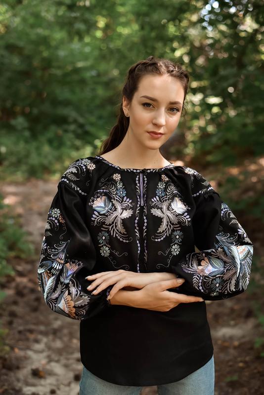 Пересилка цієї моделі здійснюється новою поштою тільки після 100% оплати на картку приватбанку або монобанку впродовж 1-5 робочих днів. Більше 2100 позитивних відгуків за 4 роки відданої роботи говорять про те, що нам можна довіряти!!!!!!!!!! З накладною платою не працюємо. Чорна довга сукня з льону "Птаха" Оригінальний квітковий орнамент в стилі петриківського розпису покриває майже повністю верх вишиванки: рукава, манжети, плечі, груди. Спинка однотонна. Застібається вишиванка спереду. Пишні рукави починаються від плеча, а не від горловини, що дозволяє візуально зберегти тендітність жіночої статури. Тканина: 100% льон Буває міді або максі а також блуза Розмір від 42 до 56
