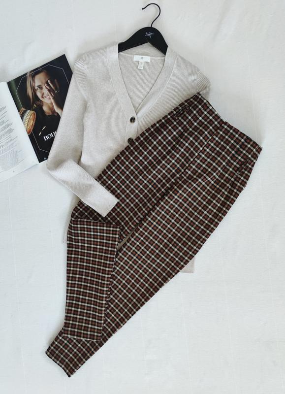 🌿брюки в клітку високої посадки, гарно тягнуться, сідають по фігурі Розмір:М Заміри: ширина поясу 36 см, ПО бедер 44 см, довжина 95 см, висота посадки 32 см Склад: віскоза