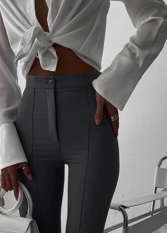 Брюки 💰Цена: 565 грн 🧶Ткань: креп дайвинг 📐Размер: 42-44, 46-48 🎨Цвет: графит ⠀ Брюки клеш в обтяжку, идеальной посадки На молнии и пуговице 🪡