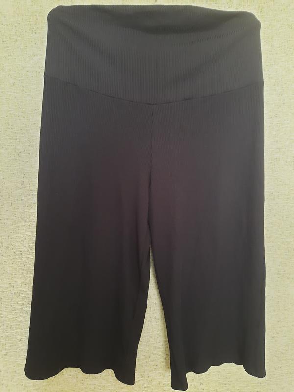 Новые кюлоты без Бирки в рубчик, с высоким эластичным поясом.Чудво тянутся и сядут на животик.Колир насыщенный черный( на третьем фото цвет в реале) Замеры ОТ 110 (в спокойном состоянии) ОБ 116( в спокойном состоянии) Длина 85 см.+ 30 см в максимальных замерах так как в талии отлично тянутся.Красные пятна на фото то отблеск от камеры, реали насыщенные черные
