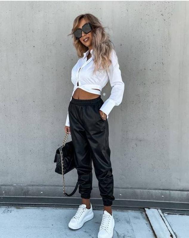 Джогери Арт: 2081 Розміри : 1 (42-44) 2(46-48) Опис: кольори беж та чорний Тканина : еко-шкіра