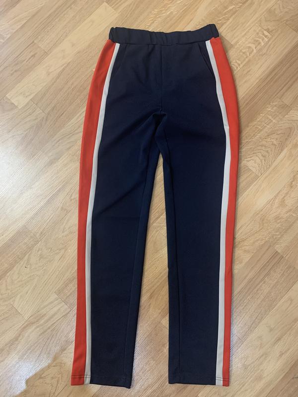 Шикарные брюки в идеальном состоянии. Будут шикарно смотреться и в классическом луке, и в спортивном. Длина по внешнему шву - 100 см, по внутреннему - 74 см, объём талии - 32 см, объём бёдер - 90 см, высота посадки спереди - 29 см, сзади - 34,5 см.