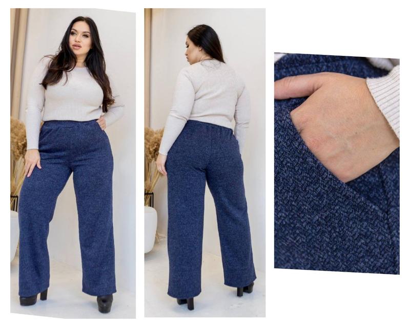Брюки палаццо Тканина - трикотаж з додаванням вовни Розміри 50,52,54,56,58,60,62,64 Стегна об’ємом до 140 см 835 грн. Разміри 64,66,68,70 Стегна об’ємом до 160 см Пояс на резинці, висока посадка Кишені робочі Довжина брюк 110/80 см або за вимогою клієнта.ск3.Не натискайте на кнопку Купить, технічні проблеми Підписуйтесь..чекаю)