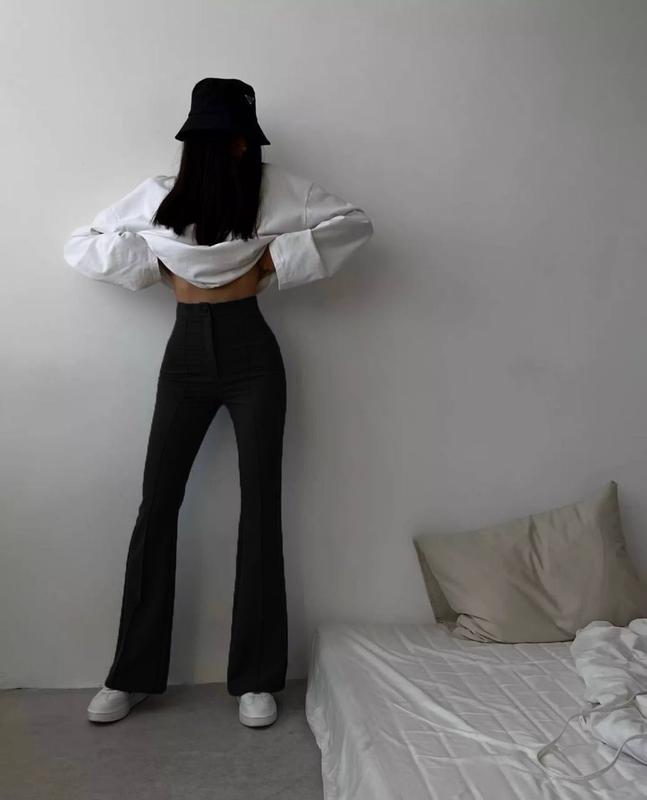 Брюки 💰Ціна: 369 грн 🖇Мод 715 🧶Тканина: креп дайвінг 📐Розмір: 42-44, 46-48 🎨Колір: графіт, чорний ⠀ Брюки кльош в обтяжку, ідеальної посадки На блискавці та ґудзику 🪡