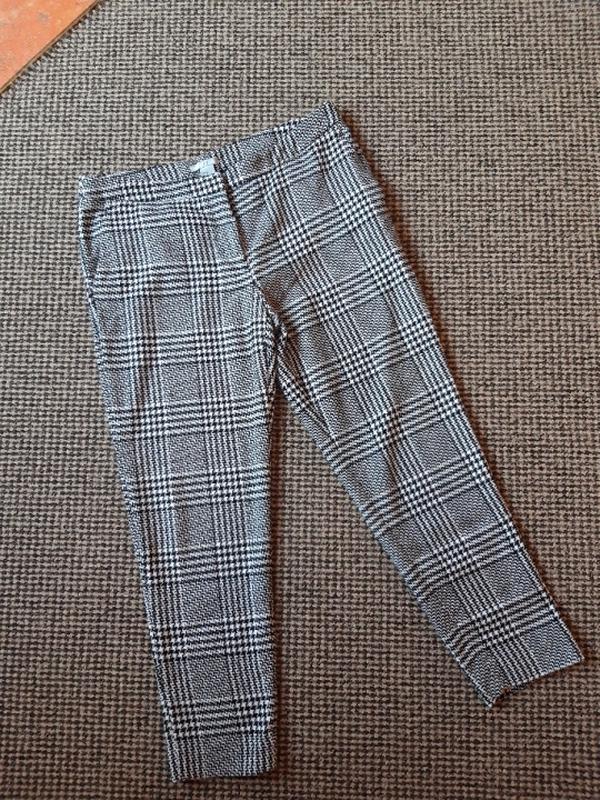 актуальні завужені теплі штани у клітину,пот 43-45,поб 50-52,є кишені,посадка 27/31,довжина 86