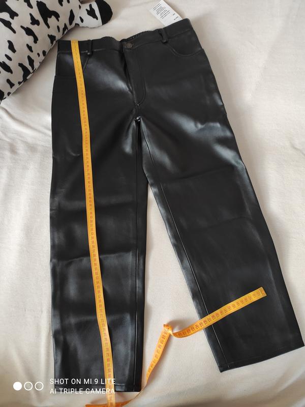 Нові шкір- зам брюки, з недоліків - ледь помітні царапини, видно на останньому фото ( кіт постарався), але з довгим светром не видно.....Розмір буде на M,L
