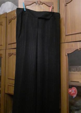 Красивые классические брюки известного бренда Next. Вдоль всех брюк нитка с отливом (не люрекс). Застежка молния, две пуговицы и два крючка. Широкий пояс. Полуобхват талии 45 см, длина по боковому шву вместе с поясом 106 см, полуобхват брючины по низу 30 см.