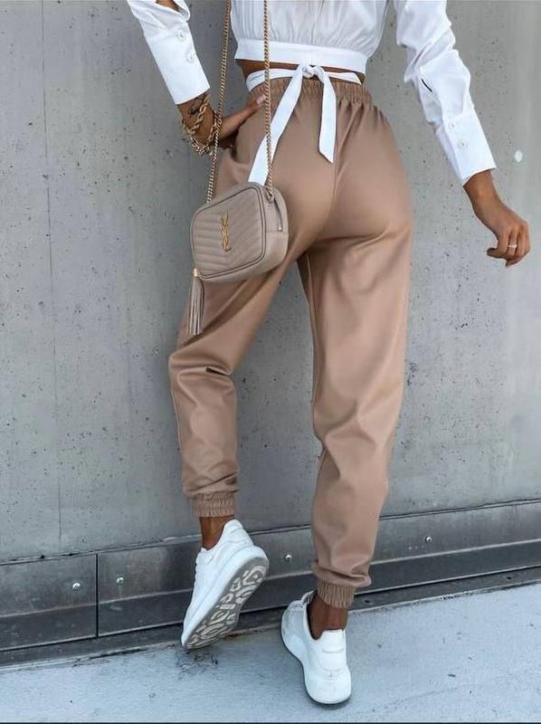 Джогери Арт: 2081/43 Розміри : 1 (42-44)  2(46-48) Опис:   кольори беж та чорний Тканина : еко-шкіра