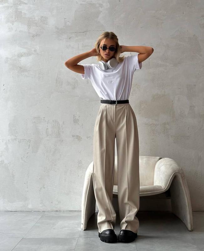 🖤NEW 🖤 брюки ▪️мод 190 ▪️тканина : костюмка ▪️колір: чорний, бежевий ▪️СМ; МЛ ▪️480грн брюки палаццо ; Дуже стильні брюки на високій посадці, кльош від стегна ; виконані з якісної тканини;😍 Довжина штанів 110 см Розміри SM | ML Талія: 60-66см | 65-73 см Стегна : 88-94 см | 95-99 см