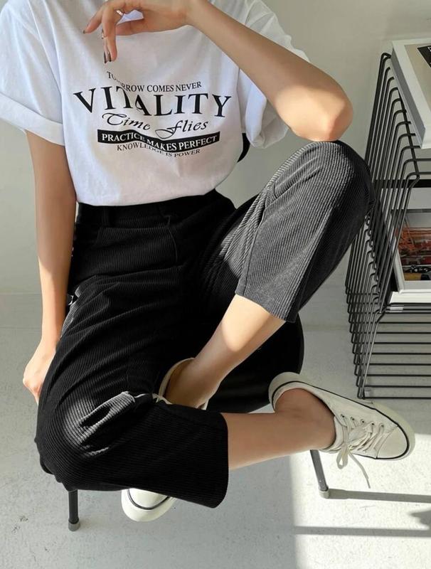 Базові, укорочені штани, з високою посадкою❤️ Вони ідеально впишуться у твій повсякденний гардероб😍 Брюки Розмір: 42-44, 46-48 Колір: чорний, Тканина: мікровельвет