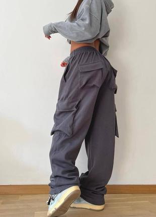 Штани з накладними кишенями, знизу на затяжках Модель: 4365 Розмір: 42-46, 48-52 Колір: графіт, молоко Тканина: двухнитка Турція Заміри: (42-46) Об'єм талії - 60-70см (на резинці) Об'єм стегон - 104см Довжина - 110см (48-52) Об'єм талії - 78-85см (на резинці) Об'єм стегон - 112см Довжина - 110см